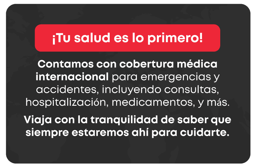 Con cobertura médica, protección ante cancelaciones y asistencia en emergencias, estarás cubierto en cualquier imprevisto.